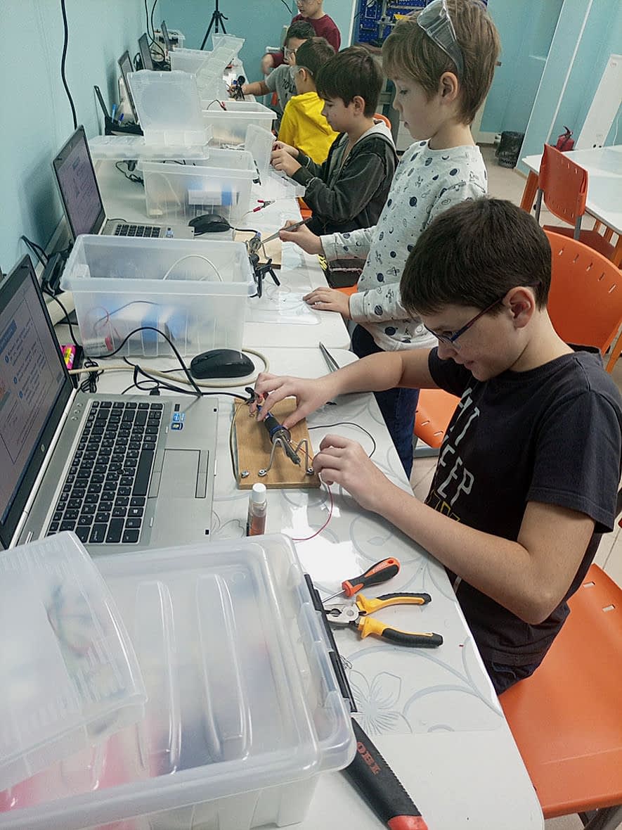На занятиях, ребёнок учится работать с инструментами и различными материалами (алюминий, оргстекло, пластик, композитные материалы и т. д.), собирать и паять электрические схемы, измерять электрические величины, изучает язык программирования C++, адаптированный для платформы Arduino, или Scratch (в зависимости от возраста и имеющихся навыков программирования) а также получает навыки работы в 3D редакторе (FreeCad) и печати на 3D-принтере.